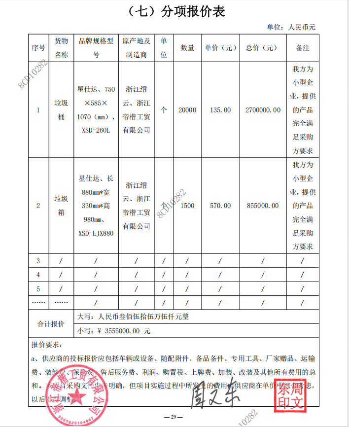******服务中心环卫作业设备更新项目C包二次:垃圾桶20000个、垃圾箱1500个